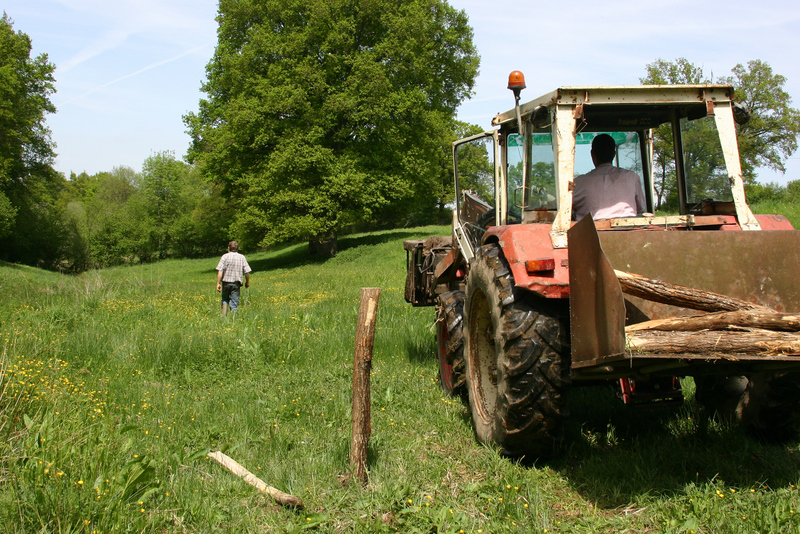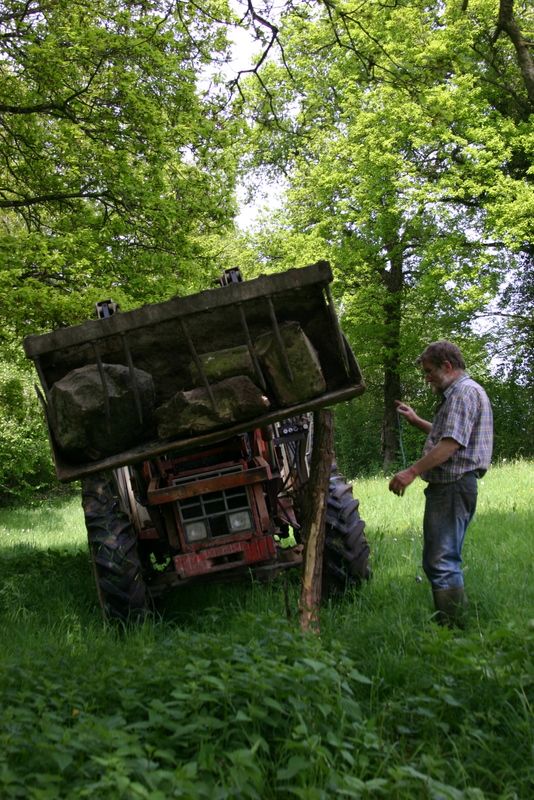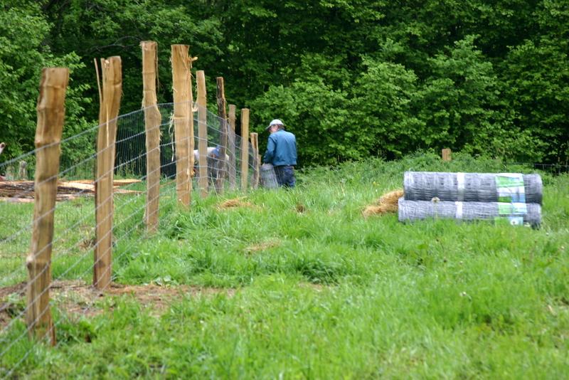 Exactly as promised, Jean-Pierre turned up on the Monday afternoon with his son Christopher and a large old tractor. Within minutes they were bashing in the first post, and things progressed at a speed I could never have approached. Their cheerful disregard for any health and safety concerns entertained and appalled me.