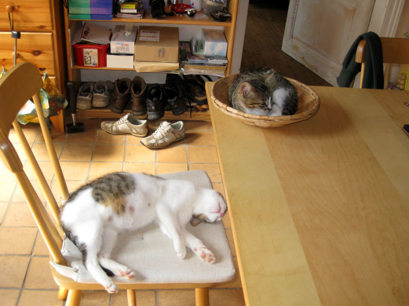 We could of course take her to the vet now, but we have become soft (even softer) in our rural dotage, and simply cannot bring ourselves to be that harsh. And, having experienced the high rate of attrition in her last litter, and the subsequent disappearance of one of our original three inherited cats, we feel that this farm has space for a few more felines – particularly if they turn out to be anywhere near as delightful as our current kitten (who, incidentally, has become known as Little Cat, after Little Cat the Elder took her leave).