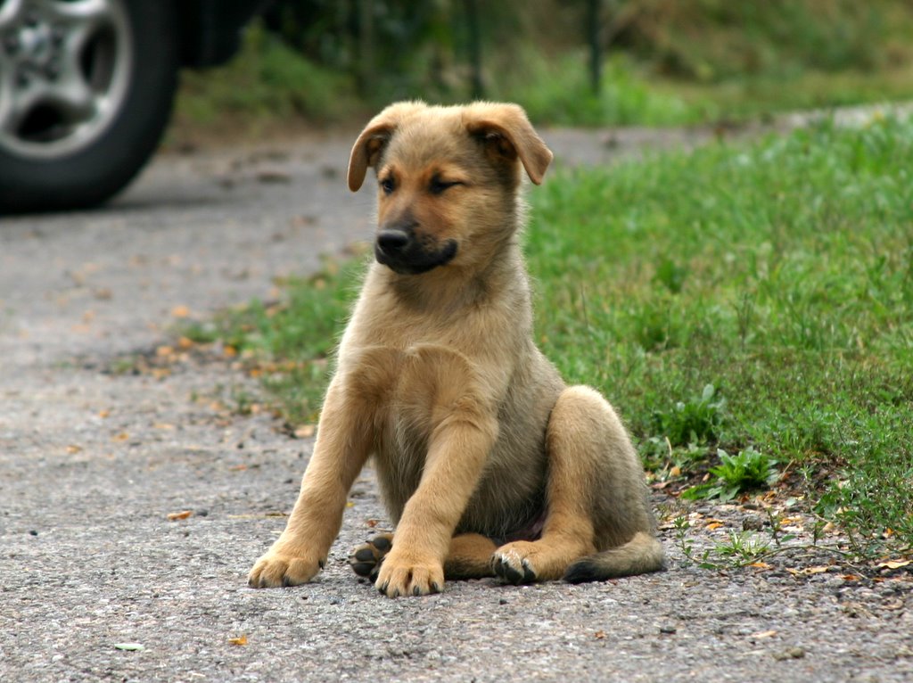 But when he arrived at our house late on Friday morning, he already had two (travel-sick) puppies with him to show us. He took the sorry-looking drooling bundles of fur out of his car and deposited one each in our arms.We looked into their sad little puppy eyes and looked at each other. Florian rambled on in the background in a mixture of French and English, about their parentage, their feeding habits, their friendliness. But we weren’t properly listening. I was wondering how on earth we could possibly tell Florian to take them away again, and how we could possibly choose one and reject the other. I was also wondering how the hell we could accommodate a boinging parcel of puppiness in our small house, which was already bulging with three cats, a crazy cluster of kittenhood, and Big Ol’ Max.