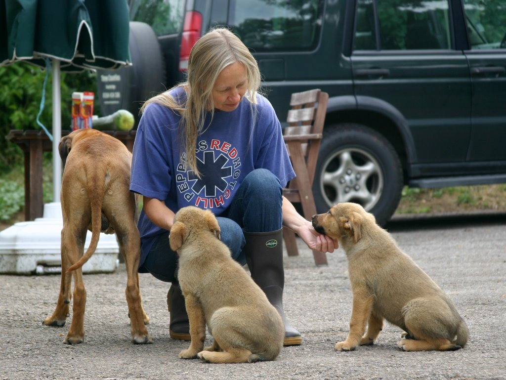 I don’t recall how the conversation with Florian developed from that point. I guess I was in shock. But suddenly, we were all shaking hands and sort of congratulating each other on a Good Transaction; and Florian was Over-the-Moon, and So Happy that the puppies would have such a good home; and we were wondering if the sick puppies would ever come out from their hiding place under the Landrover; and Florian was waving, and tooting his horn and driving cheerily away in his vomit-festooned vehicle.
