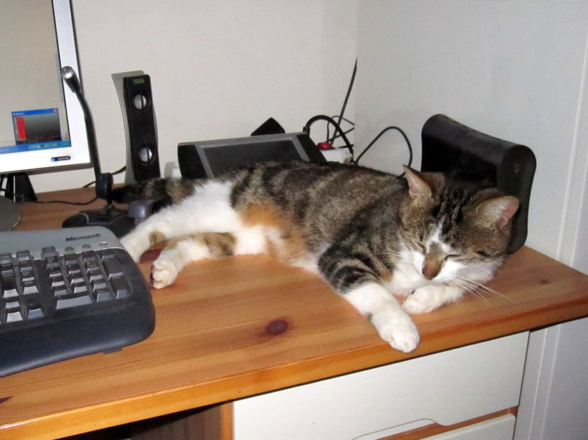 Of the three cats that we inherited with the house, only Big Cat and Mother Cat remain. The original Little Cat disappeared about a month after she had been spayed (sorry, but I have to say it…..bloody waste of money!). Both Big Cat and Mother Cat were pregnant, but we managed to get Big Cat spayed before she had her kittens. Mother Cat however was uncatchable, and went on to have two litters of trouble before we finally managed to put an end to her rampant procreative powers. Only one of the first litter survived, and she became known as Little Cat the Second – partly because she was, not surprisingly, little, but also because she looked very much like Little Cat the First. She has also been spayed, and is, also not surprisingly, no longer little.