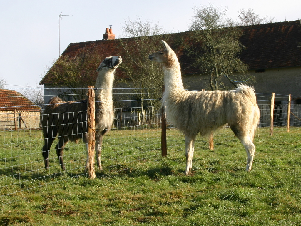 Well, we have never tested having Valentine and Duc immediately next door to Pedro and his women. Since we moved here, they have been separated by twenty metres of no-llama’s-land, across which Pedro has snorted and Duc/Valentine have posed and strutted. A phony war of insults and threats has been conducted by the males, encouraged by a preening group of females (“Go on Pedro, show them how strong you are!” “Hey you boys over there, why don’t you come and show us some action?” “Ooh, are you going to fight over little me?”).