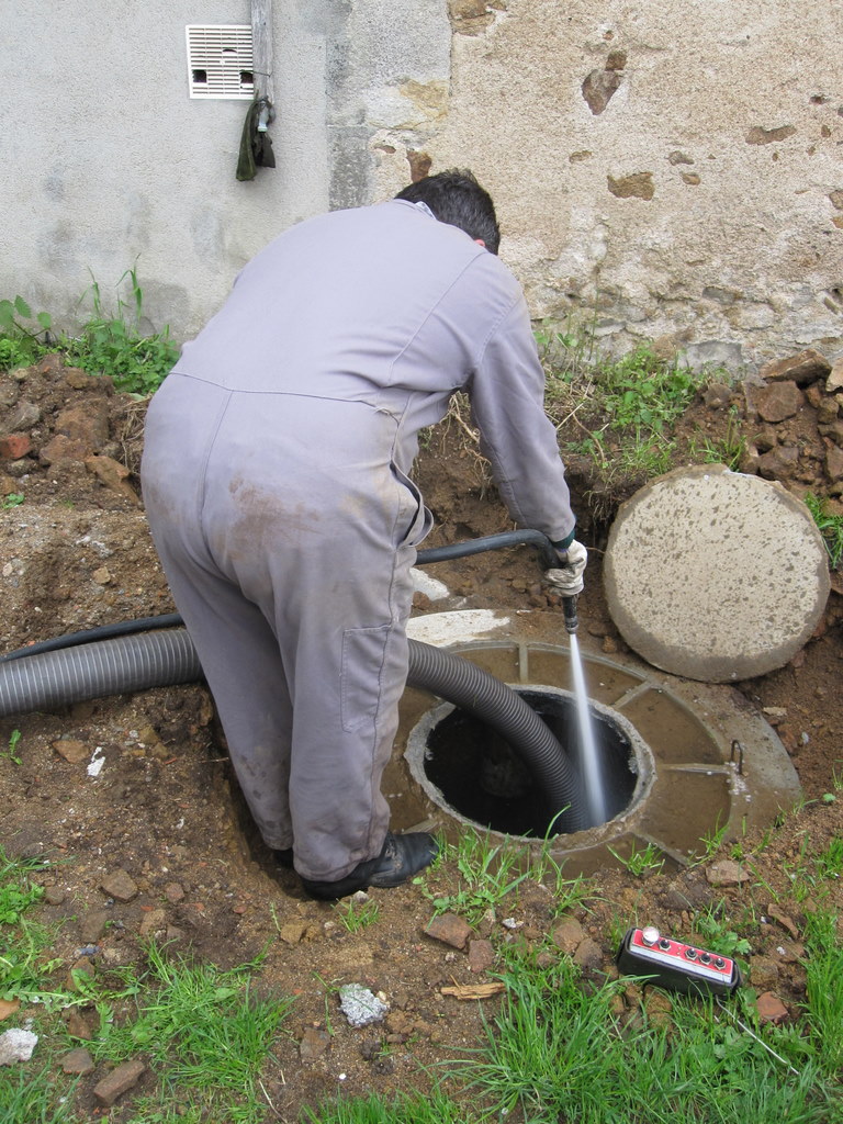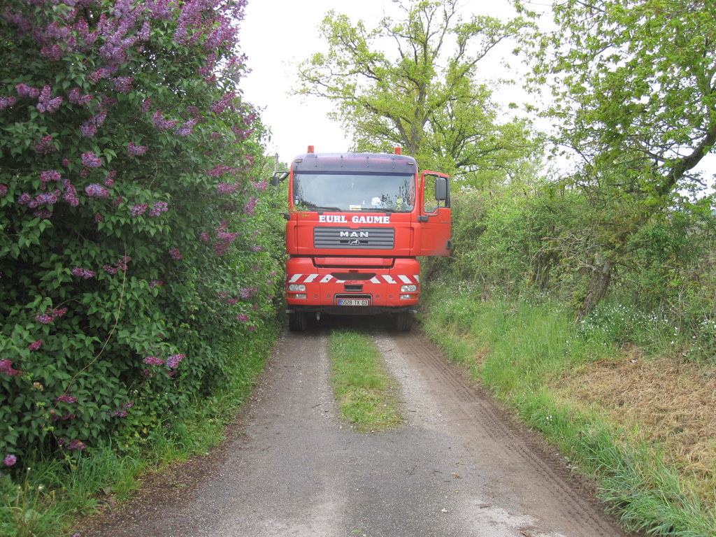 We had the usual mobile phone call to enquire how exactly to find our isolated house, and then his huge red lorry squeezed down the lane.Turning round seemed likely to prove a major problem, solved by removing a section of fencing so that he could tentatively reverse into the cow field opposite. He then backed the truck down the lane to get as near as possible to the septic tank.M Gaume was a man of few words, but undoubted skill and experience. In a few minutes, he had a large hose assembled and stretched out from the lorry to the hole. Without hesitation, he chipped through the cement and levered up the top off the tank.