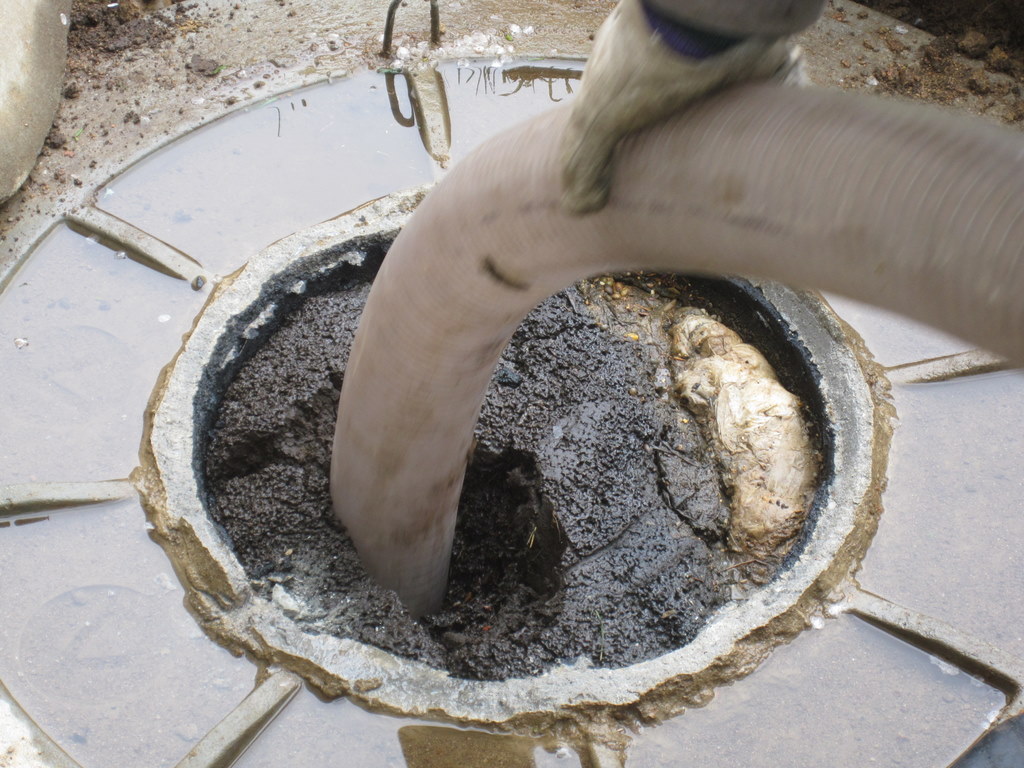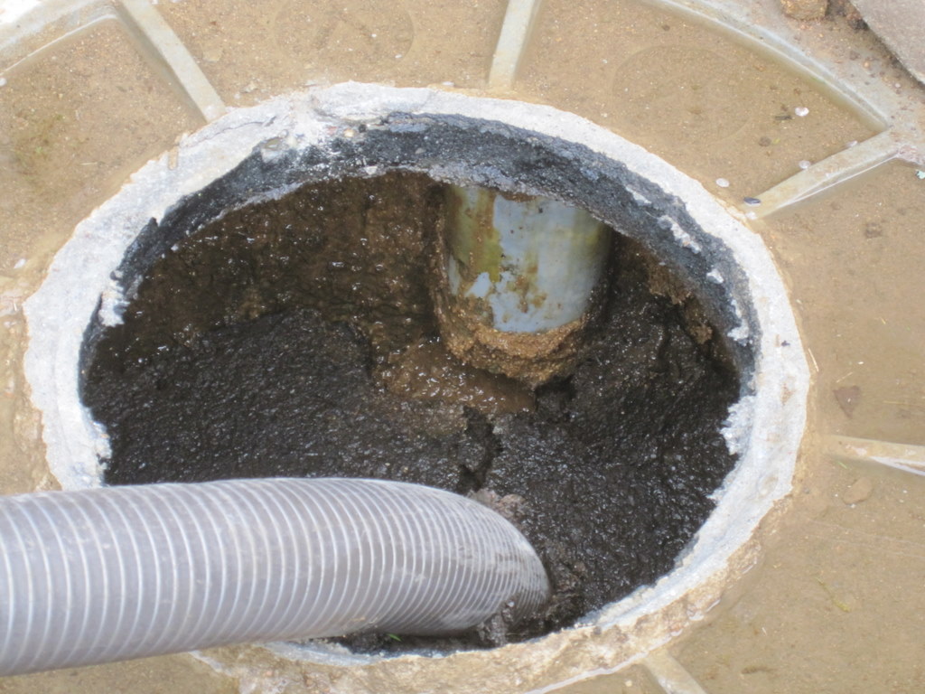 Perhaps not surprisingly, the material under the solidified crust was less attractive and more odorous – and I suggest you consider carefully whether you want to click on the picture on the left for an enlarged version!It turned out that the tank had the two chambers found on a modern tank, and so a second suction session was needed.