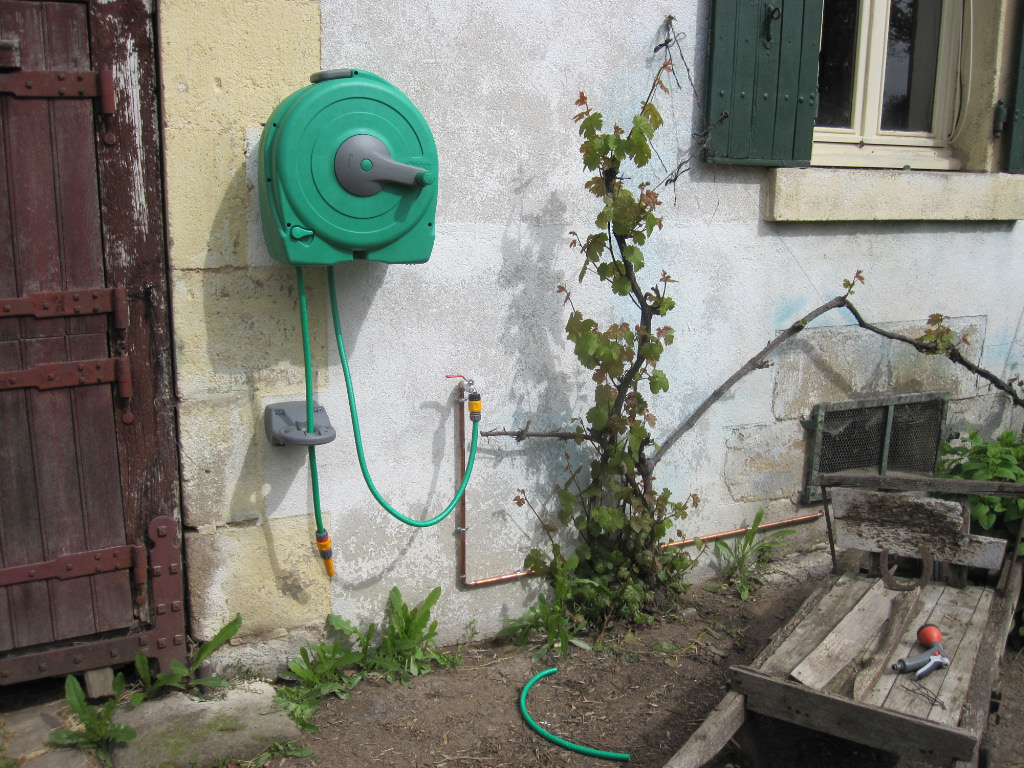 But Plumber Man has His Way, and if, in the end, His Way works, then who am I to complain. The upshot of it all is that, after all the fun and games, we now have a beautiful outside tap, complete with a hideously ugly, big green plastic hose reel contraption adorning the front wall next to the barn door. And because the distance between the tap and the mains is so short the water pressure is wonderful, and a bucket fills in less than no time. And the hose reaches to Mars and back, and doesn’t get squashed or twisted or tangled because of the ugly plastic contraption thingy. And another whole lot of Water-related Joy has come my way.