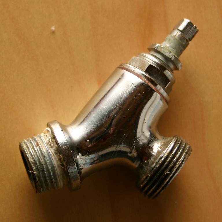 I mopped up the new puddle, and moved the wet extension lead a little further from the water source, carefully avoiding poking my wet fingers into the live holes (fighting against that almost irresistible urge to do so that the very thought engendered). Plumber Man returned and removed the top from the tap. He examined the spindle carefully, but could see no reason why it might be leaking. He reconnected the hose and re-turned on the tap, and then removed the top again, hoping to detect the source of the leak. We waited a moment. Nothing. We waited another moment….. Derrip…… drip…. drip.. drip, dripdrip, drippleippleipple…. “Bollocks!” Plumber Man aptly expressed the mood of the entire audience. “I can’t see why it’s leaking. I think we may need a new tap.” He re-turned off the tap, and started to re-unconnect the hose. Water pissed out all up the wall and over the floor.