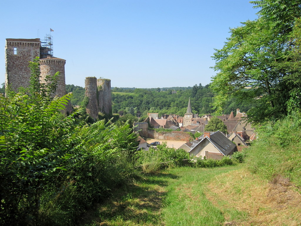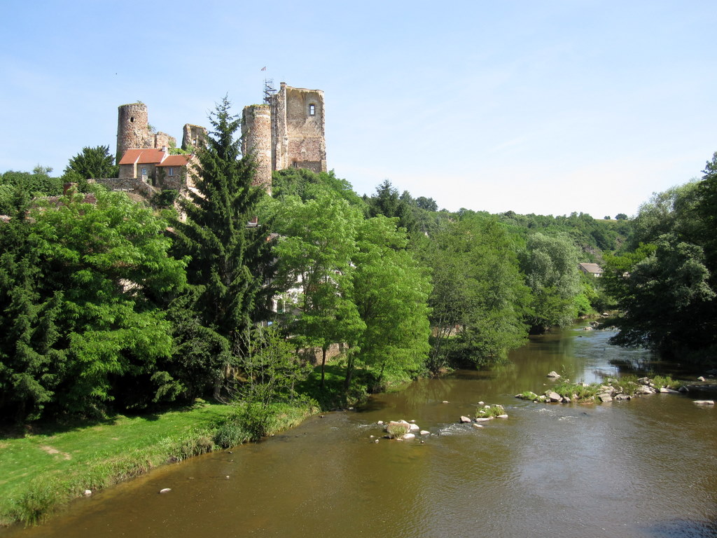 We went out early, before the sun was too, too hot, and drove to Herisson. Herisson is French for hedgehog. The town is a small and very pretty collection of old medieval buildings with impossible roofs. It has a ruined castle on its hilltop, and it sits in big sweeping loop of the Aumance river (whose source is just up the road from our house, and into which the stream on our land – and the filtered effluent from our septic tank – romantically flows).