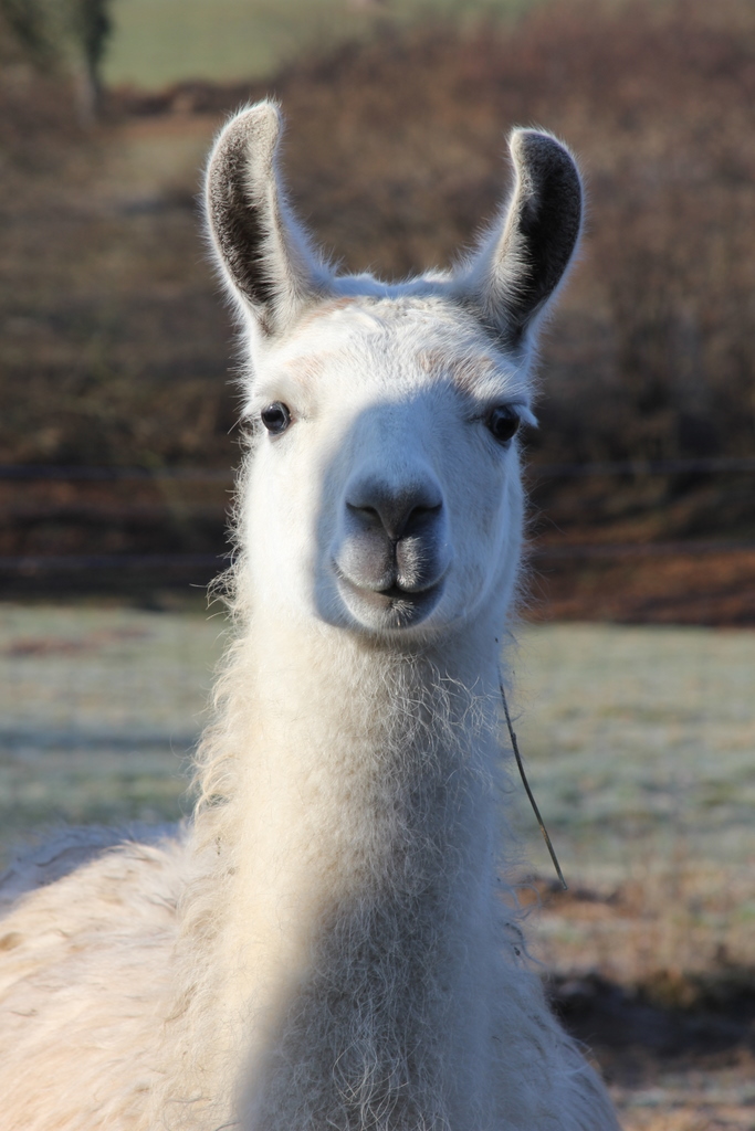 She was born in October 2008 and has always been a friendly, forward llama. She is always ready to engage in scrounging carrots or other delicacies. Her mother is the splendid Elif, and we had been really looking forward to her offspring, thinking they would be likely to show a really attractive blend of characteristics.
