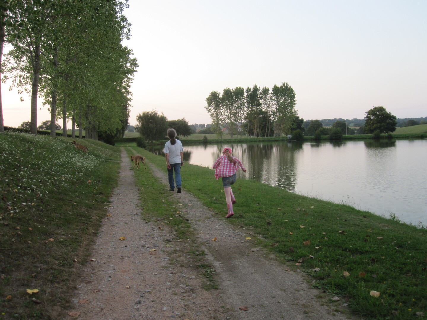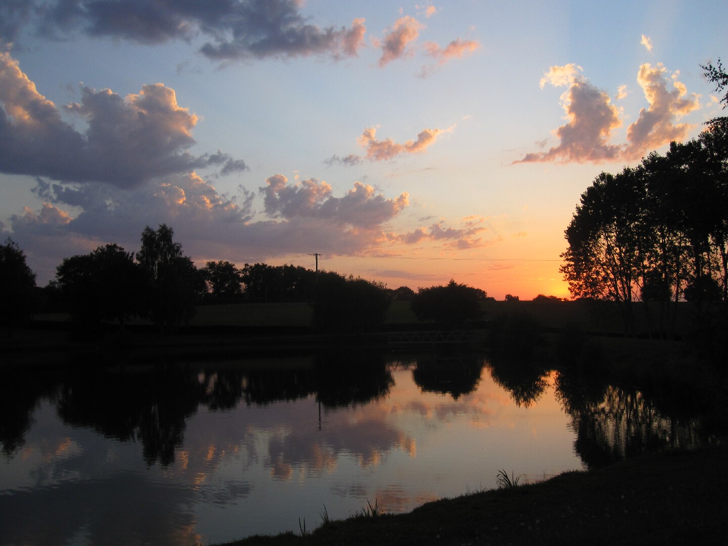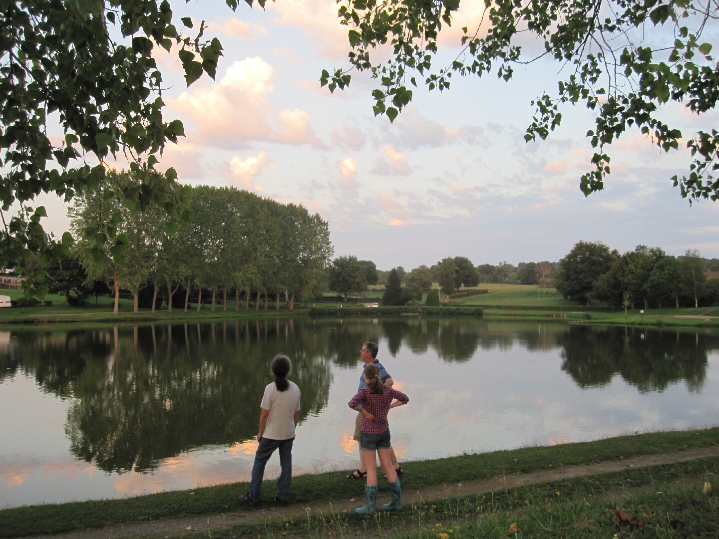 In an attempt to rise to the challenge, we sprinkled the customary Blanchetière holiday activity of Doing Nothing with a variety of exceptional and oh-so-exciting escapades. We visited Le Montet (our nearest village avec commerces) to purchase bread and cakes, to not-purchase postcards, and to cool down with a drink in the shade outside the café. We visited Le Montet a second time to eat a slow-and-tasty lunch in the shade outside the café, to watch wasps carve meals the size of their own bodies from the remnants on our plates and ferry them heavily away, and to once again not-purchase postcards. And, on the last evening, we topped off the whole enthralling caboodle with a dog-and-insect-accompanied circumambulation of the plan d’eau on the edge of our actual village of Saint-Sornin, and a bit of cloud-spotting.