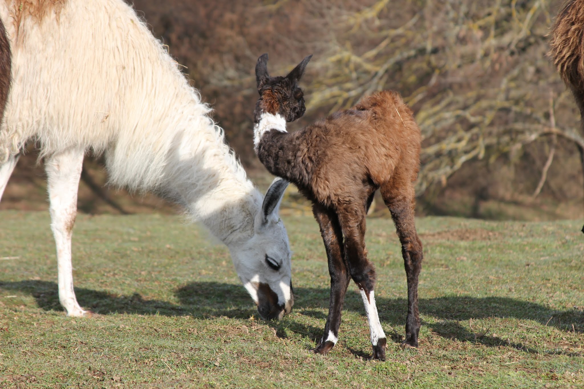 Having become suddenly aware of the possibility of another round of llama pregnancies, (after having wildly underestimated rampant Lenny’s fertility levels) we did a bit of calculating, and realised that Capucine could be due to drop another live one some time in late March. Which she did – predictably earlier than calculated and therefore a couple of days after I had left on my last visit to Derby. Doh!