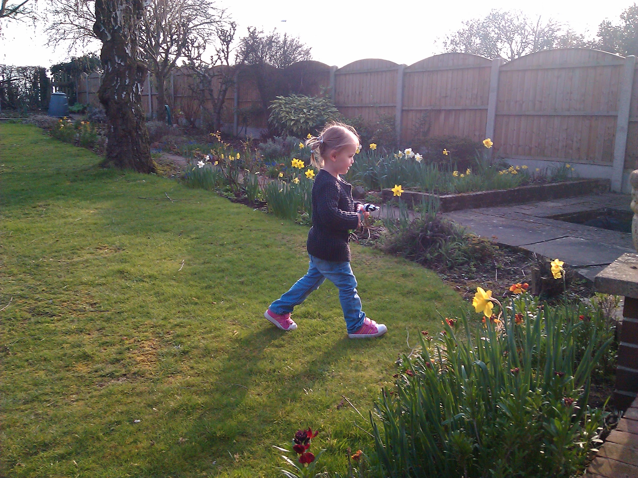 And of course the garden was “great”, and a perfect place for “Going On A Bear Hunt (we’re not scared)”, and for Hide and Seek (“Granny, find me! I’m OVER HERE!”) and for galloping about on Big Sticks (Is there Room on the Broom for a Granny like me?) And the tadpoles were squiggly and the newts were dinosaury. And the ladybirds were tickly and the pampas fronds were wands.