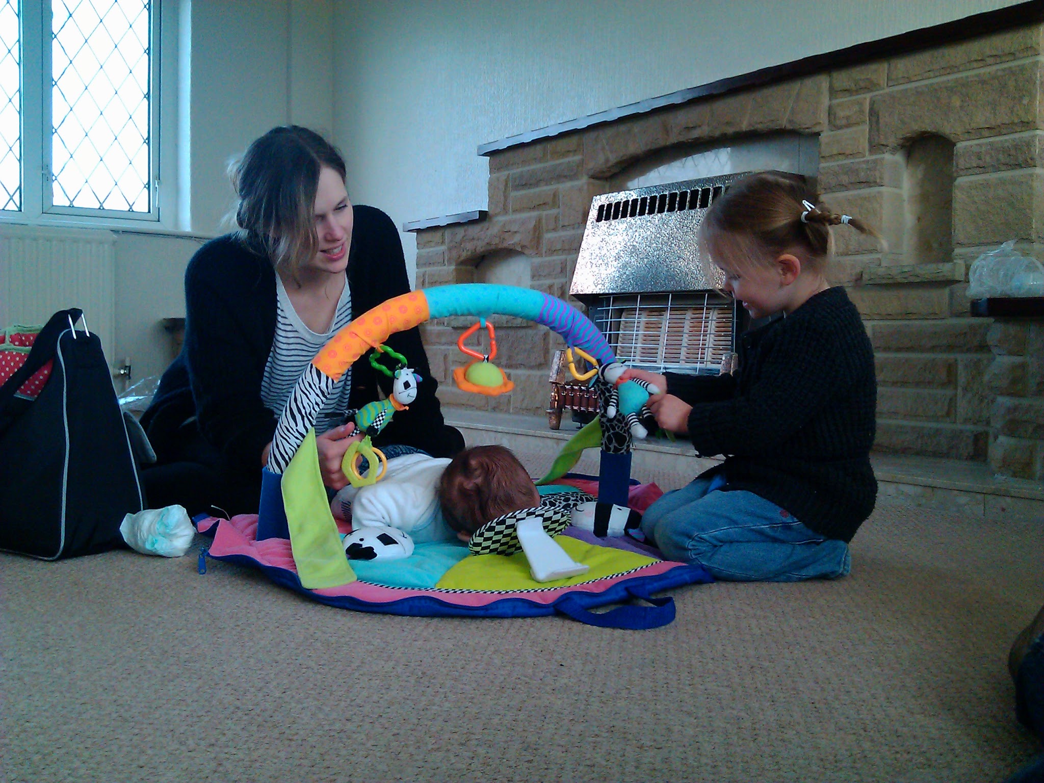 Of course, the fact that good-old Mum now has a spacious house of her own in Derby means that her offspring have capitalized on the opportunity to create more space in their own abodes by unloading as much junk as they can in the motherly direction. So my virtually furniture-free home (there is a single bed for me to sleep in, and a small old sofa left by the previous owners), was soon overtaken by bags of miscellany and Jennifer’s Big Toys. Luckily the Narnia-like wardrobe between the two extension bedrooms swallows miscellany whole. And luckily I find a lounge full of childishness to be a Very Happy Thing. As did Jennifer, who, delighted to discover her massive doll’s house and all manner of previously hidden-away fun strewn about Granny’s New House, declared that this was her ‘pre-school’, and promptly set about organising ‘areas’ for different types of play.