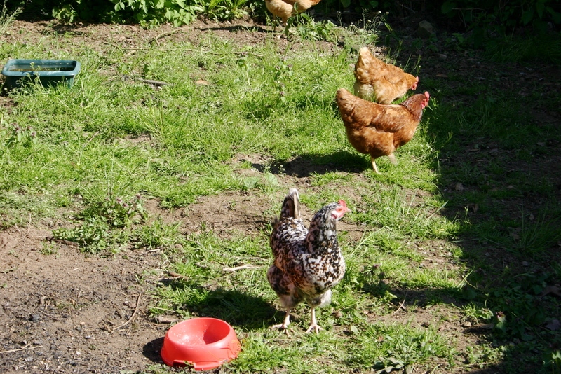 Lonely chicken, the sole survivor of the former residents, is now joined by our original four chickens.